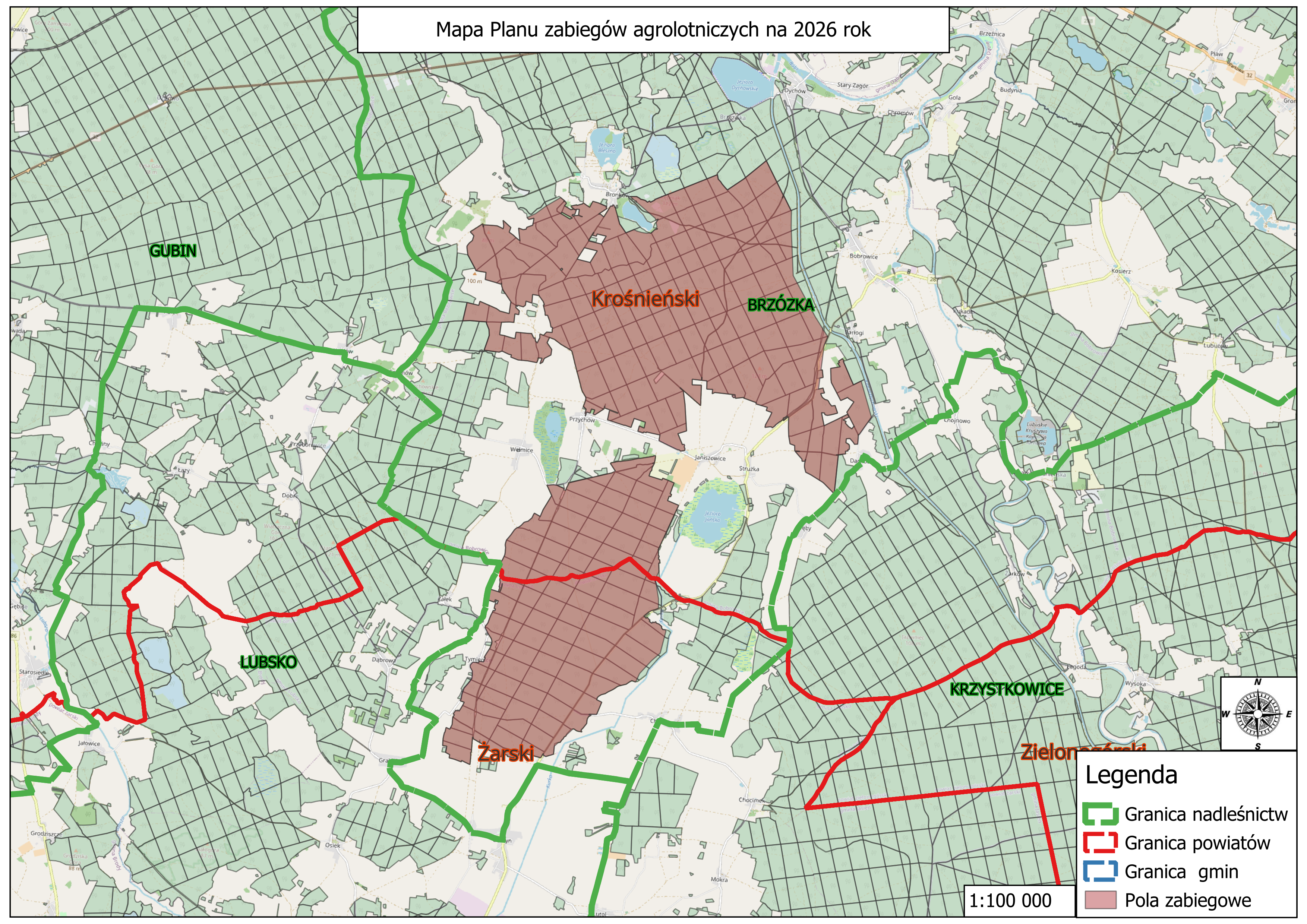 Regionalna Dyrekcja Lasów Państwowych w Zielonej Górze zawiadamia, że w okresie od 28 kwietnia do 15 czerwca 2026 roku (w zależności od pogody oraz stopnia rozwoju owadów), ze względu na stwierdzony stan zagrożenia drzewostanów na terenie sześciu nadleśnictw zostaną przeprowadzone zabiegi ograniczania populacji gąsienic szkodliwych owadów, takich jak: strzygonia choinówka, brudnica mniszka oraz stadium dorosłego chrabąszczy. Zabiegi agrolotnicze zostaną wykonane po spełnieniu wymagań formalno-prawnych, przy użyciu specjalistycznej aparatury i statków powietrznych: