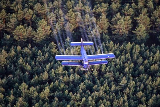 Las jest miejscem życia wielu gatunków owadów. W specyficznych warunkach, niektóre z nich mogą stanowią zagrożenie dla trwałości lasu, zwłaszcza wtedy gdy występują w formie gradacji, czyli w znacząco zwiększonej liczbie, np. 1000-krotnie w stosunku do stanu „normalnego". Zadaniem leśników jest niedopuszczenie do takich sytuacji lub jeżeli już do niej doszło – skuteczne ograniczenie liczebności szkodników. W ostatnich latach do najbardziej niebezpiecznych owadów należą brudnica mniszka i barczatka sosnówka. Występują one na terenie RDLP w Zielonej Górze w takiej ilości, że konieczne jest ich zwalczanie przy pomocy wyspecjalizowanych środków chemicznych. Do takich działań wykorzystywane są samoloty typu AN – 2R (popularny „Antonow") wyposażone w nowoczesną aparaturę do wytwarzania mikrokropel i urządzenia typu GPS AGRO, naprowadzające samolot na miejsce zagrożenia i pozwalające na precyzyjne wykonanie zabiegu. W latach 2012 i 2013 powierzchnia objęta takim zabiegiem w RDLP w Zielonej Górze wynosiła ok. 27 tys. ha rocznie. Używamy wyłącznie bezpiecznych dla ludzi i pszczół preparatów chemicznych. Działają one selektywnie, wyłącznie na organizm szkodliwego owada. Termin i sposób prowadzenia takiego zabiegu jest ściśle skorelowany z fazą rozwoju owada, rośliny żywicielskiej oraz pogodą, a także podlega on rygorom prawno-formalnym obowiązującym w tym zakresie w Polsce.